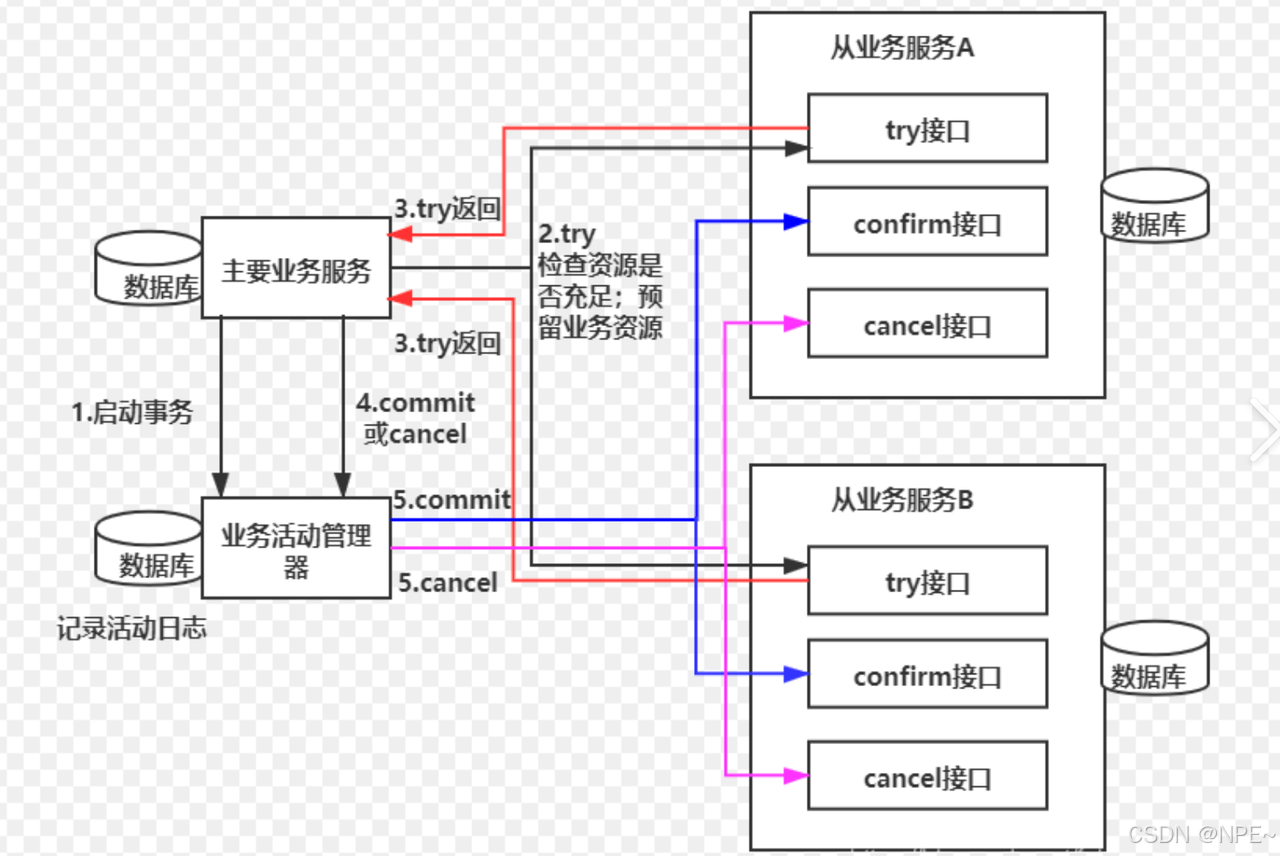 概念:XA是一个分布式事务协议,XA中大致分为两部分:事务管理器和本地资源管理器,其中本地资源管理器往往由数据库实现,而事务管理器作为全局的调度者,负责各个本地资源的提交和回滚。