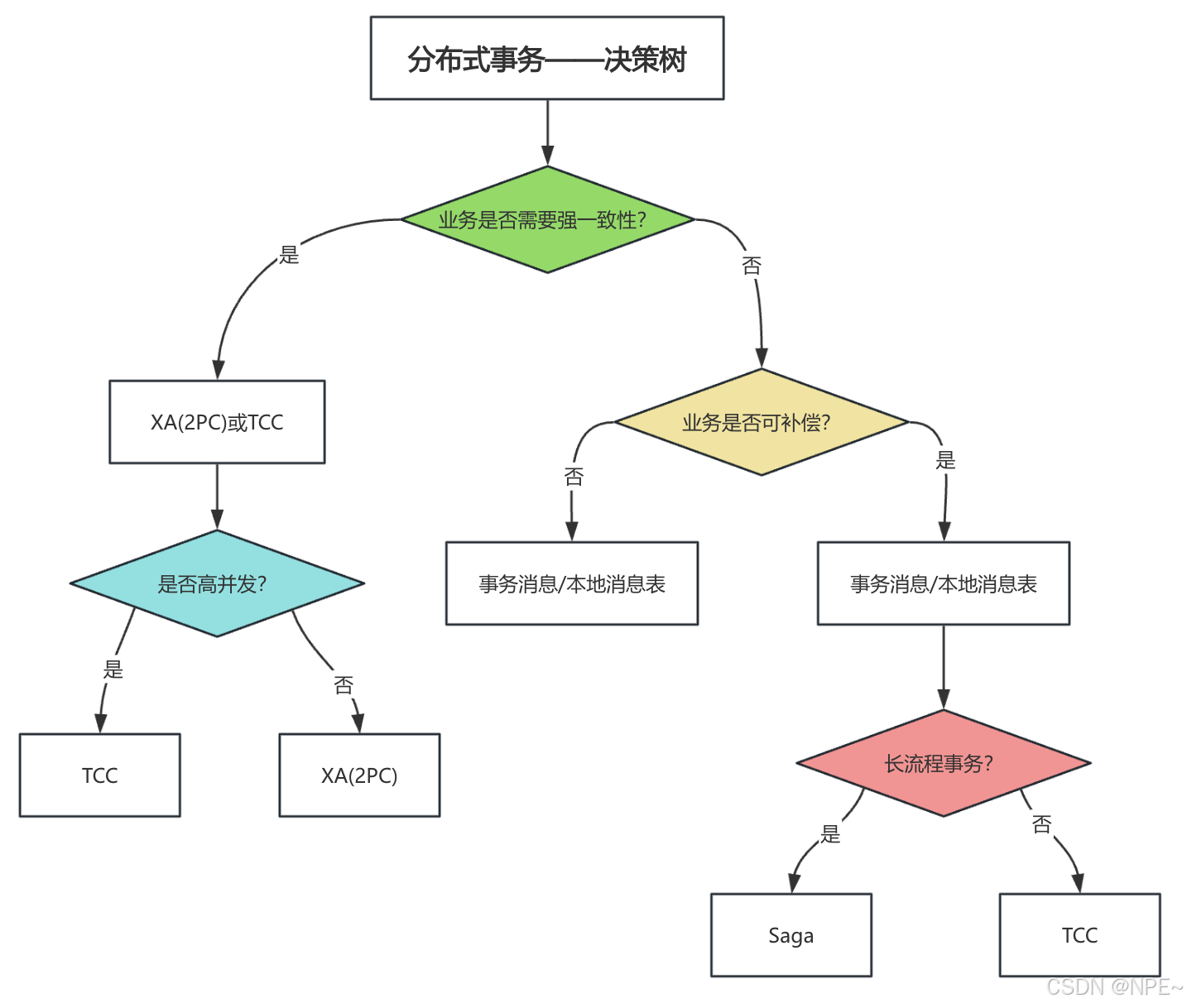 - 优先考虑业务流程的合理性,避免不必要的分布式事务