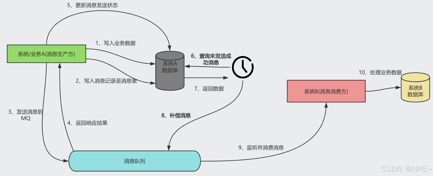 | 本地消息表 | 最终一致 | 中 | 中 | 中小型系统 |