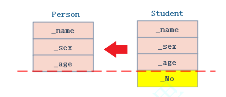 1、继承的方式下,基类成员是作为派生类的成员存储在派生类对象中,派生类对象的内存存储结构和组合时基类对象作为派生类第一个成员的结构是一样的