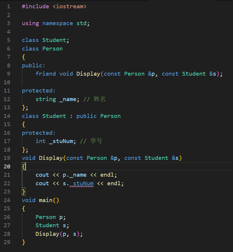 友元关系不能继承,也就是说基类的友元不能访问子类的私有和保护成员
