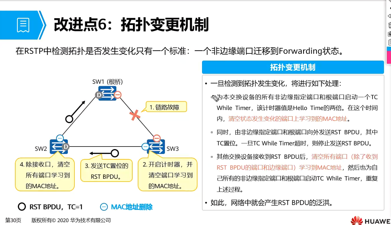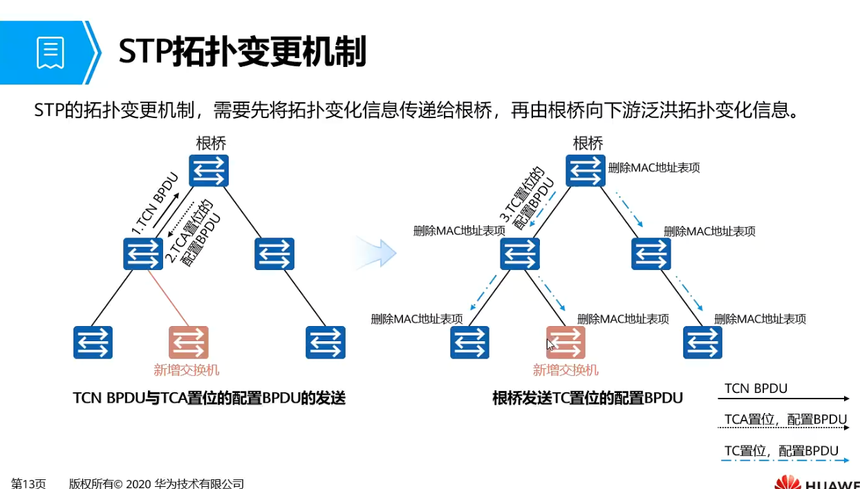拓扑变更后 开启计时器清空学习的mac 发送tc置位的rst bpdu