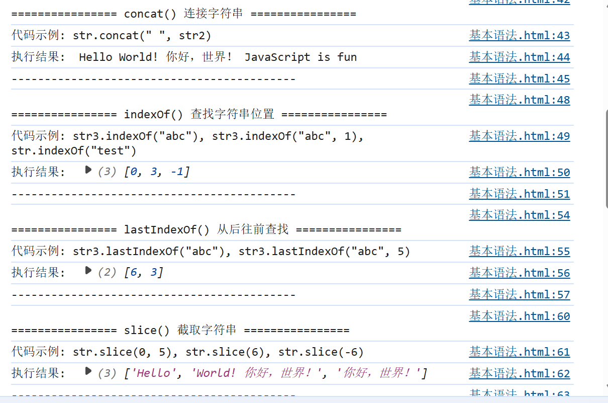 console.log(`代码示例: str3.indexOf("abc"), str3.indexOf("abc", 1), str.indexOf("test")`);