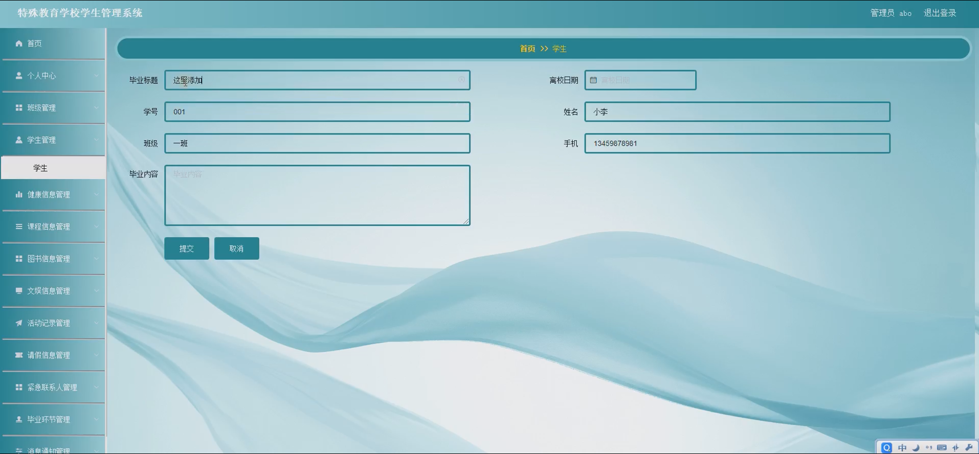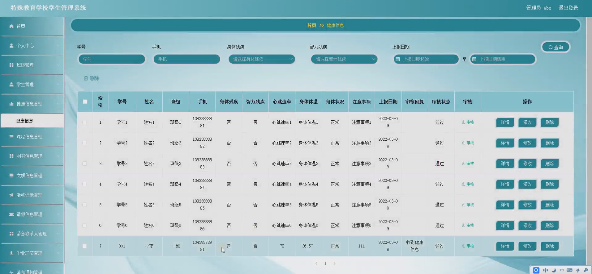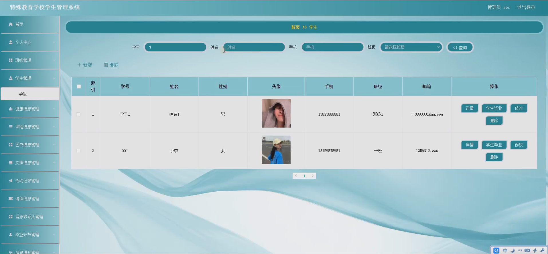 特殊教育是教育体系中极具特殊性与重要性的组成部分,其服务对象为有特殊教育需求的学生,这类学生在认知、沟通、社交等方面存在差异,对教育管理的精细化、个性化提出了更高要求。当前,多数特殊教育学校的学生管理工作仍依赖传统的人工记录与纸质档案模式,该模式存在诸多弊端:一是信息分散,班级、学生、健康、课程等各类数据散落于不同的档案袋或表格中,难以实现高效整合与共享;二是管理效率低下,人工录入、统计数据易出现错误,且查询、更新信息耗时费力,无法及时为教育教学决策提供支持;三是个性化服务不足,特殊学生的健康状况、学习需求等具有动态变化性,传统模式难以精准追踪并提供针对性的管理服务。