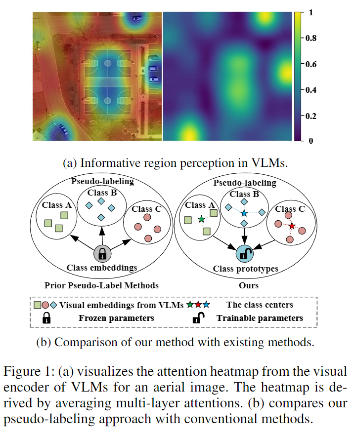 后来研究者们想到用"视觉-语言模型(VLM)"的零样本能力来解决这个问题,也就是让模型通过文字描述去匹配未知物体(比如用"红色屋顶的小房子"描述新类别)。但这种方法又陷入了"文字依赖"的坑:如果没有现成的文字描述,模型就没法识别;而且文字和图像的匹配常常不准,比如把"长条状的农田"误判成"公路",导致识别效果大打折扣。