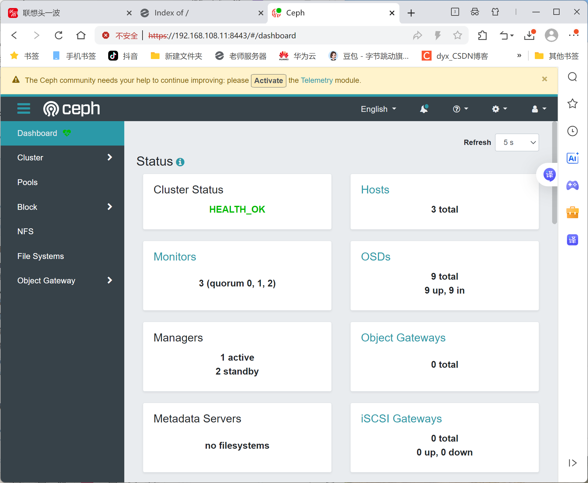 - [**Ceph Dashboard** **接口**](#Ceph Dashboard 接口)