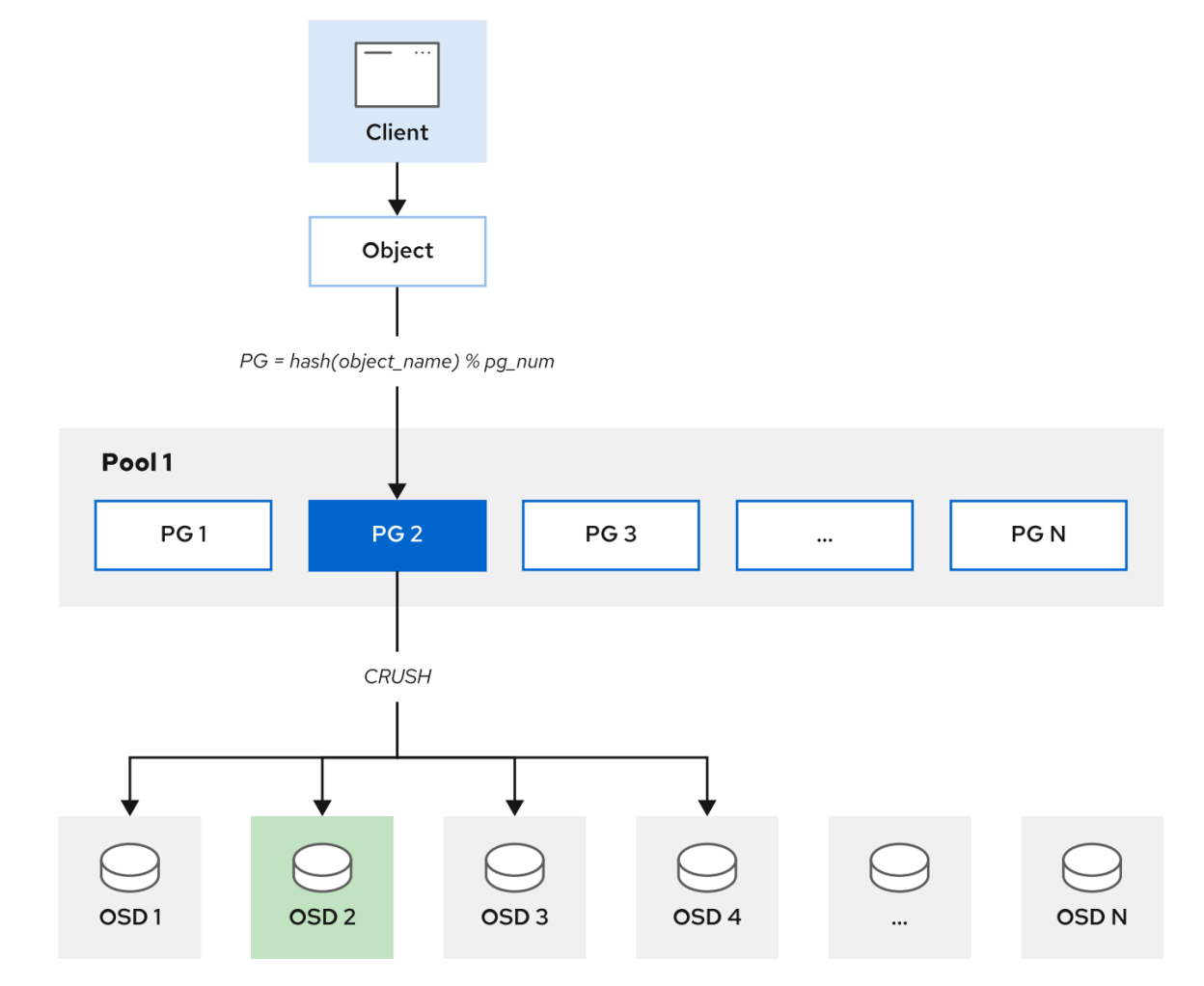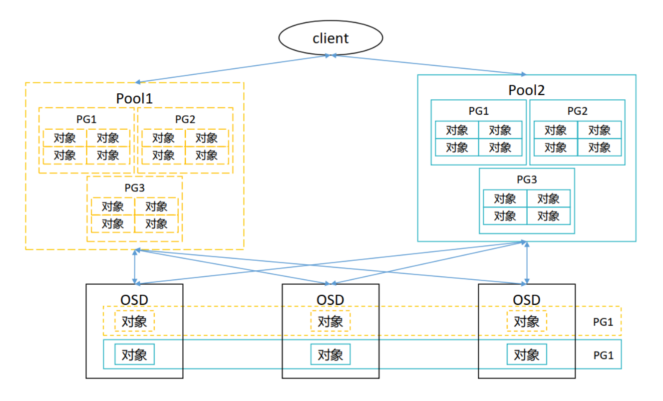 建议每个 OSD 关联的PG数量为100-200。由于集群中 OSD **数量是有限的,所以PG的数量也是有限的。**创建的池越多,导致池能够分配的PG数量越少,每个PG 将会为更多的对象映射到OSD磁盘,进而导致每个 PG 的计算开销更高(负载更高),从而降低 OSD 性能。