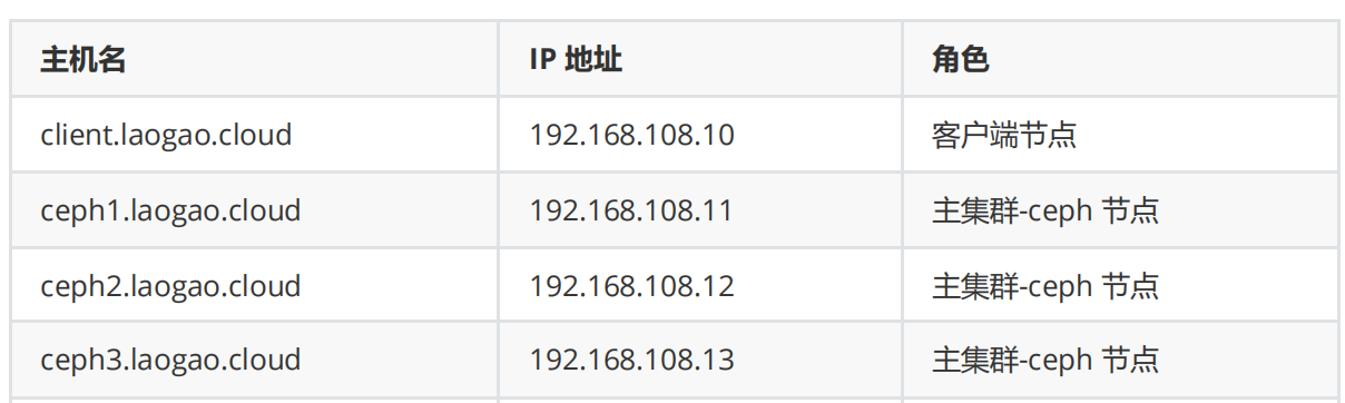 - [**Ceph** **集群环境说明**](#Ceph 集群环境说明)