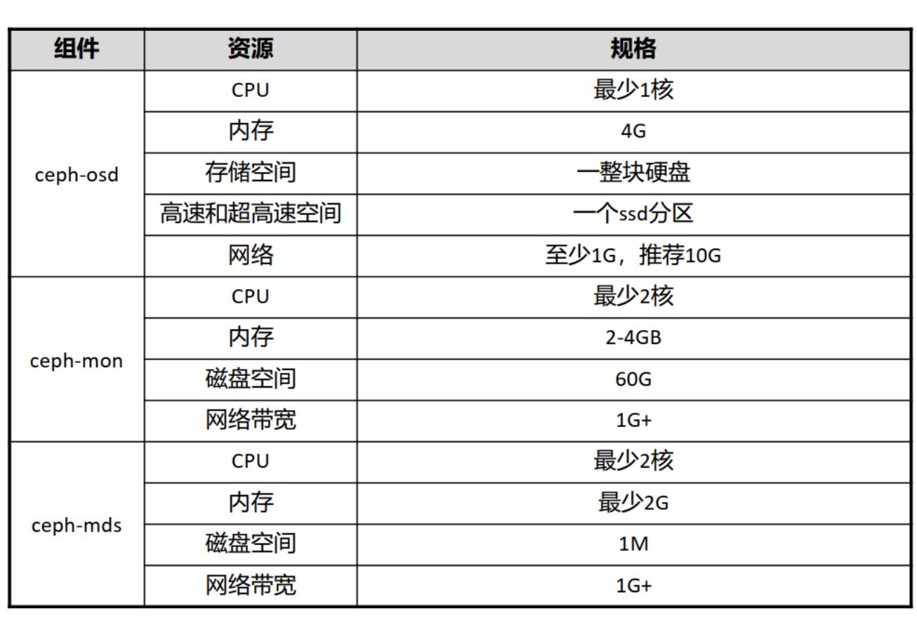 - [**Ceph** **集群 最小硬件规格**](#Ceph 集群 最小硬件规格)