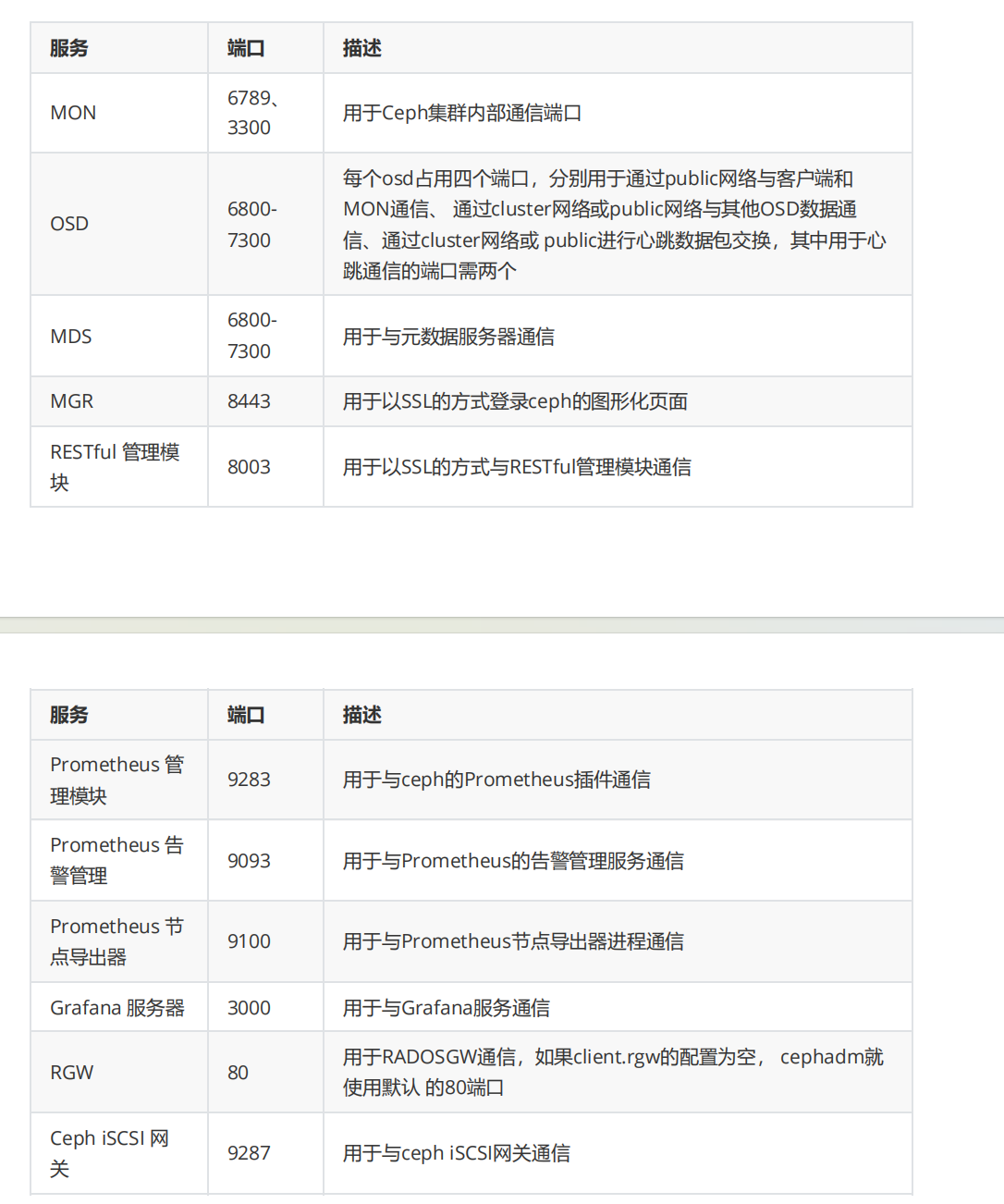 - [**Ceph** **服务端口**](#Ceph 服务端口)