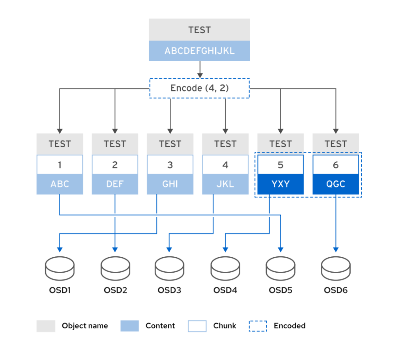 root@ceph1 \~ 11:41:38\]# rados -p pool_web get hosts newhosts \[root@ceph1 \~ 11:41:57\]# cat newhosts dyx3 ## 查看快照中对象 \[root@ceph1 \~ 11:42:03\]# rados ls -p pool_web -s snap1 selected snap 3 'snap1' hosts ## 获取快照中对象 \[root@ceph1 \~ 11:42:16\]# rados -p pool_web -s snap1 get hosts hosts-from-snap1 selected snap 3 'snap1' #发现即使hosts文件拍摄快照后变了,从快照获取的依然没变 \[root@ceph1 \~ 11:42:48\]# cat hosts-from-snap1 dyx1 dyx2 ## 恢复对象内容为指定快照时内容 \[root@ceph1 \~ 11:42:55\]# rados -p pool_web rollback hosts snap1 rolled back pool pool_web to snapshot snap1 \[root@ceph1 \~ 11:43:14\]# rados -p pool_web get hosts newhosts \[root@ceph1 \~ 11:43:31\]# cat newhosts dyx1 dyx2 **快照是只读文件系统**,无法上传和删除快照中对象。 ```bash [root@ceph1 ~ 11:43:36]# rados put -p pool_web -s snap1 passwd /etc/passwd selected snap 3 'snap1' error putting pool_web/passwd: (30) Read-only file system [root@ceph1 ~ 11:44:00]# rados ls -p pool_web -s snap1 selected snap 3 'snap1' hosts [root@ceph1 ~ 11:44:35]# rados rm -p pool_web -s snap1 hosts selected snap 3 'snap1' error removing pool_web>hosts: (30) Read-only file system #### **管理 池 命名空间** Ceph可以将整个池提供给特定应用。随着应用增加,池的数量也增加。 **建议每个** **OSD** **关联的PG数量为100-200。由于集群中** **OSD** \*\*数量是有限的,所以PG的数量也是有限的。\*\*创建的池越多,导致池能够分配的PG数量越少,每个PG 将会为更多的对象映射到OSD磁盘,进而导致每个 PG 的计算开销更高(负载更高),从而降低 OSD 性能。 使用命名空间,可以对池中对象进行逻辑分组,还可以限制用户只能存储或检索池中特定命名空间内的对象。**借助命名空间,可以让多个应用使用同一个池,而且不必将整个池专用于各个应用**,从而确保池的数量不会太多。 > **命名空间目前仅支持直接使用** **librados** \*\*的应用。\*\*RBD 和 Ceph 对象网关客户端目前不支持此功能。 若要在命名空间内存储对象,客户端应用必须提供池和命名空间的名称。默认情况下,**每个池包含一个具有空名称的命名空间,称为默认命名空间。** 示例: ```bash [root@ceph1 ~ 13:55:57]# rados put -p pool_web -N myns1 hostname1 /etc/hostname [root@ceph1 ~ 13:56:28]# rados ls -p pool_web hosts #上传的hsotname1在namespace [root@ceph1 ~ 13:56:37]# rados ls -p pool_web -N myns1 hostname1 [root@ceph1 ~ 13:56:57]# rados put -p pool_web -N myns2 hostname2 /etc/hostname [root@ceph1 ~ 13:57:28]# rados ls -p pool_web -N myns2 hostname2 [root@ceph1 ~ 13:57:43]# rados ls -p pool_web --all myns1 hostname1 hosts myns2 hostname2 [root@ceph1 ~ 13:57:53]# rados ls -p pool_web --all --format=json-pretty [ { "namespace": "myns1", "name": "hostname1" }, { "namespace": "", "name": "hosts" }, { "namespace": "myns2", "name": "hostname2" } ] ``` #### **重命名池** 使用 **ceph osd pool rename** 命令,重命名池。 ```bash [root@ceph1 ~ 13:58:23]# ceph osd pool rename pool_web pool_apache pool 'pool_web' renamed to 'pool_apache' ``` \*\*重命名池不会影响池中存储的数据。\*\*如果用户重命名池,则会影响池级别的用户权限,则必须使用新的池名称来更新该用户的能力。 #### **删除池** 使用 **ceph osd pool delete** 命令,删除池。 ```bash #根据提示需要将pool name输入两次,跟上参数--yes-i-really-really-mean-it [root@ceph1 ~ 13:58:44]# ceph osd pool rm pool_apache Error EPERM: WARNING: this will *PERMANENTLY DESTROY* all data stored in pool pool_apache. If you are *ABSOLUTELY CERTAIN* that is what you want, pass the pool name *twice*, followed by --yes-i-really-really-mean-it. [root@ceph1 ~ 13:58:56]# ceph osd pool rm pool_apache pool_apache --yes-i-really-really-mean-it pool 'pool_apache' removed ``` 将集群级别 **mon_allow_pool_delete** 设置为 TRUE 才能删除池。 ```bash #子集如是true,则可以删除 [root@ceph1 ~ 13:59:32]# ceph config get mon mon_allow_pool_delete false [root@ceph1 ~ 14:00:34]# ceph config get mon.ceph1.dyx.cloud mon_allow_pool_delete true ``` **重要:删除池会删除池中的所有数据,而且不可逆转。** 还可以通过设置池 nodelete 属性为 yes ,防止池被误删除。 ```bash # ceph osd pool set pool_apache nodelete true ```