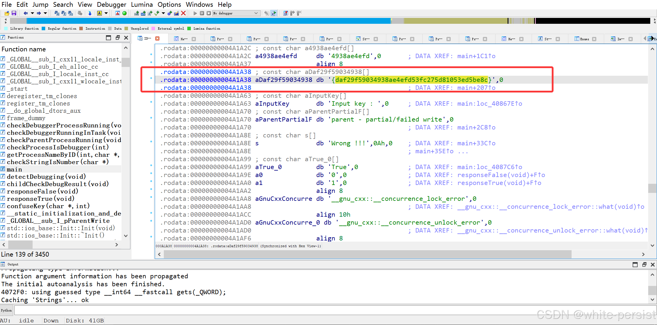 程序的只读数据段(.rodata)存储了一个关键字符串: