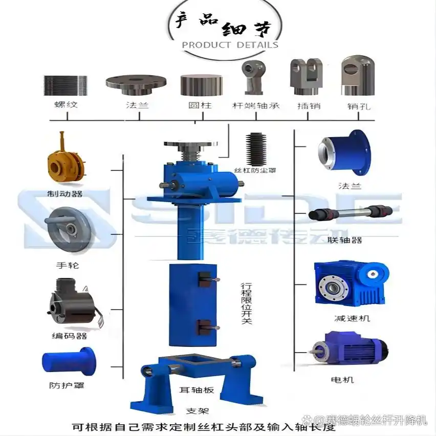 丝杆导程精度分为P5(0.023mm/300mm)和P7(0.05mm/300mm)两个等级,机床级应用建议选择P5级。提升高度定制化能力体现在最大可达2000mm的行程范围,但超过800mm时需加装导向装置防止丝杆失稳。防护等级标准配置为IP54,腐蚀性环境可选IP65防护罩。