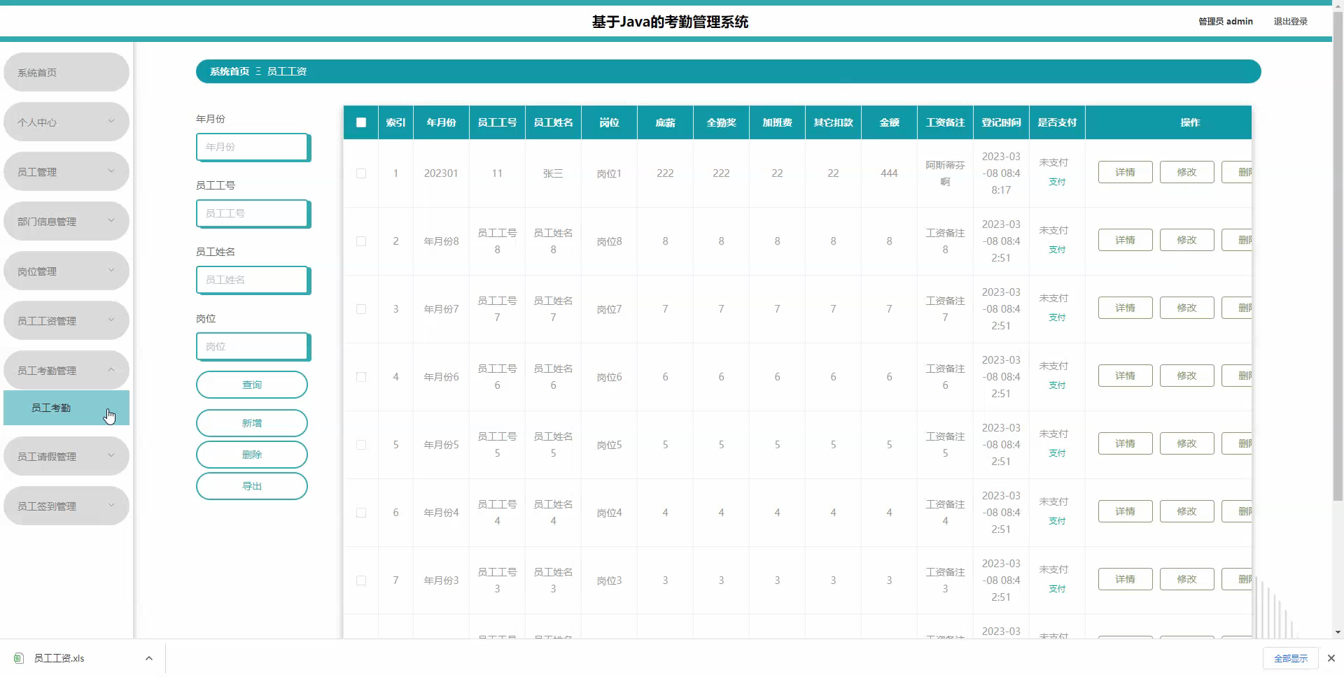 - 员工信息管理:支持员工基本信息、部门归属、岗位分配的录入与维护。