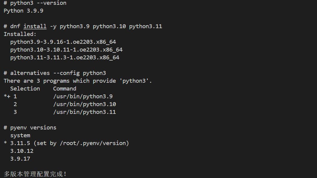 dnf install -y python3.9 python3.10 python3.11