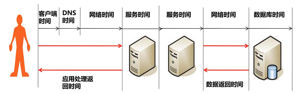 关注从提交请求到收到请求的响应时间,响应时间慢就是体验不好,不关心其他问题,不关心后端前端,什么也不关心