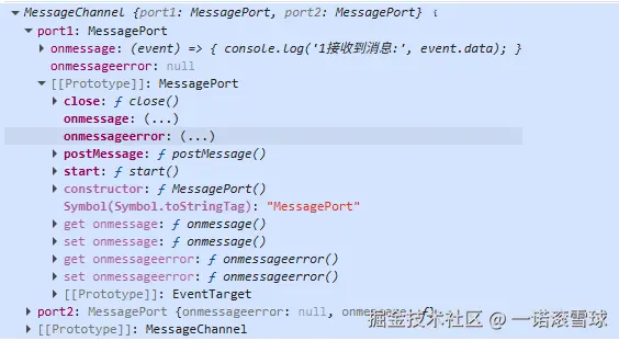 // channel.port1 和 channel.port2 都是 MessagePort 对象