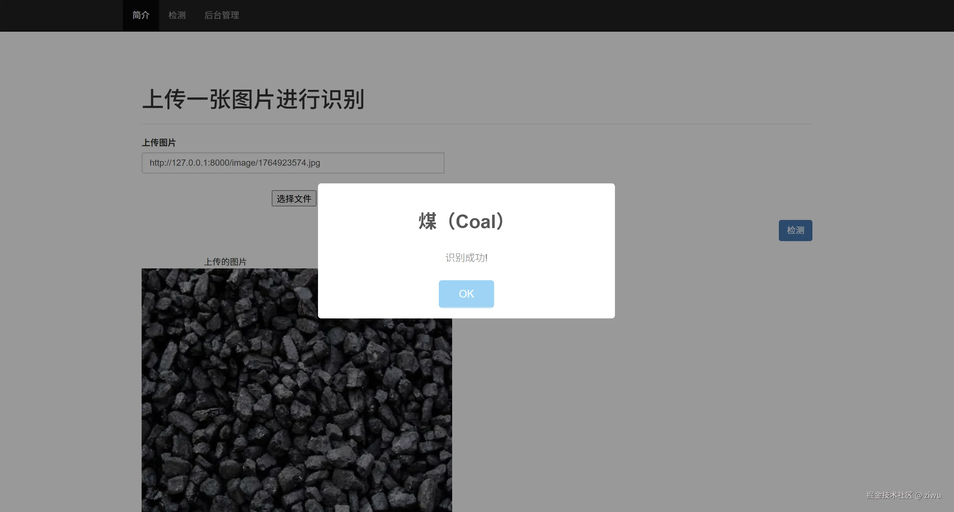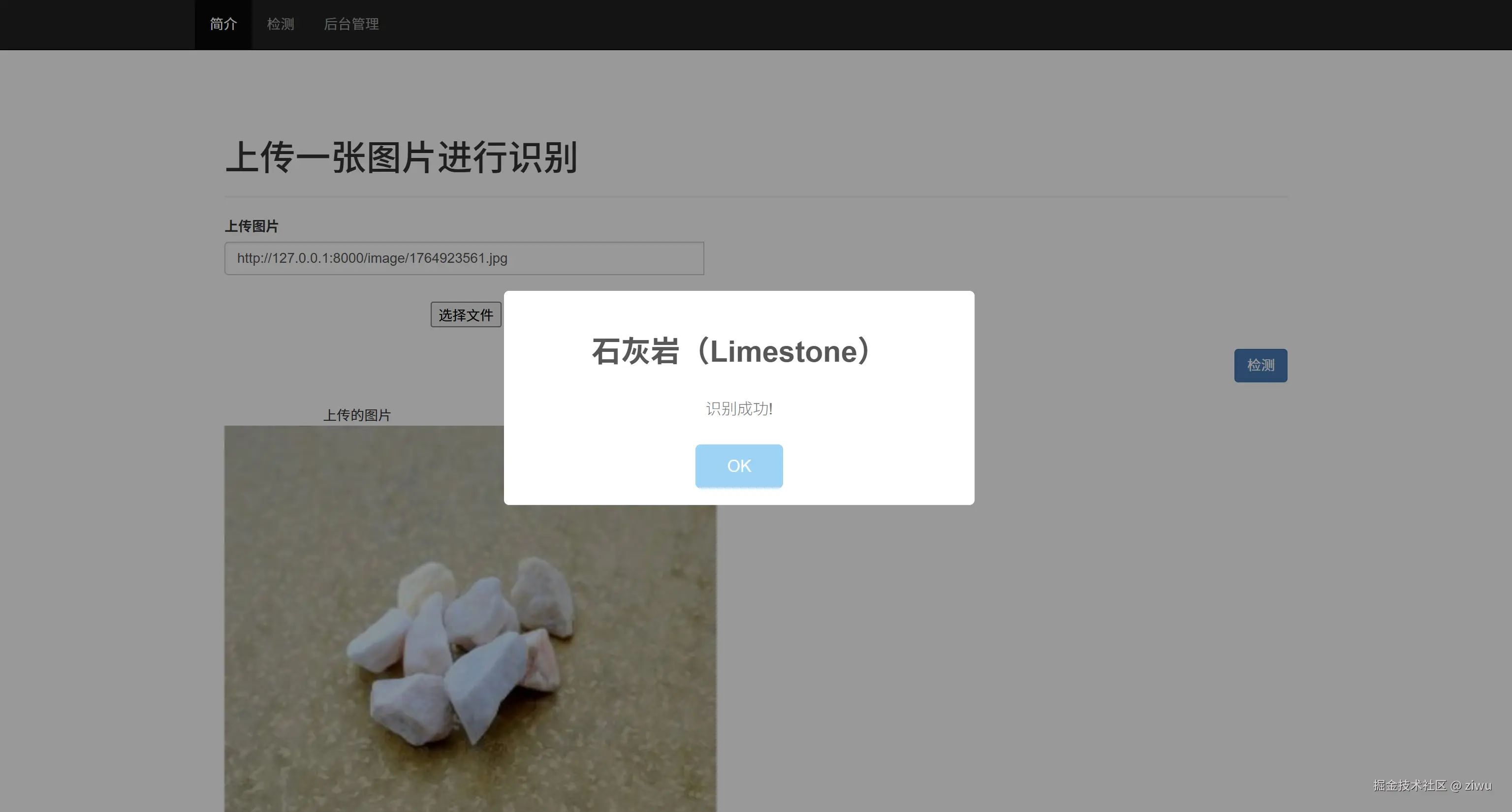 选题背景与意义: 在地质勘探、资源开发及工程勘察等领域,快速准确地识别岩石类型具有重要的实际意义。传统岩石鉴定方法多依赖于人工目视或物理化学分析,存在效率低、主观性强等局限性。随着计算机视觉与深度学习技术的快速发展,利用卷积神经网络自动识别岩石图像已成为可能,有助于提升鉴定的自动化水平与客观性。本项目基于TensorFlow框架,采用ResNet50卷积神经网络结构,针对玄武岩、煤、花岗岩等七类常见岩石构建图像识别模型,并开发了一套集成前后端的Web可视化操作平台。通过该系统,用户可便捷上传岩石图片并获取实时识别结果,从而为地质工作者及相关领域提供一种高效、直观的智能识别工具,推动岩石鉴定的数字化与智能化转型。