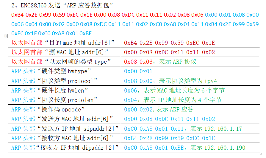 ENC28J60发送ARP应答,42个字节