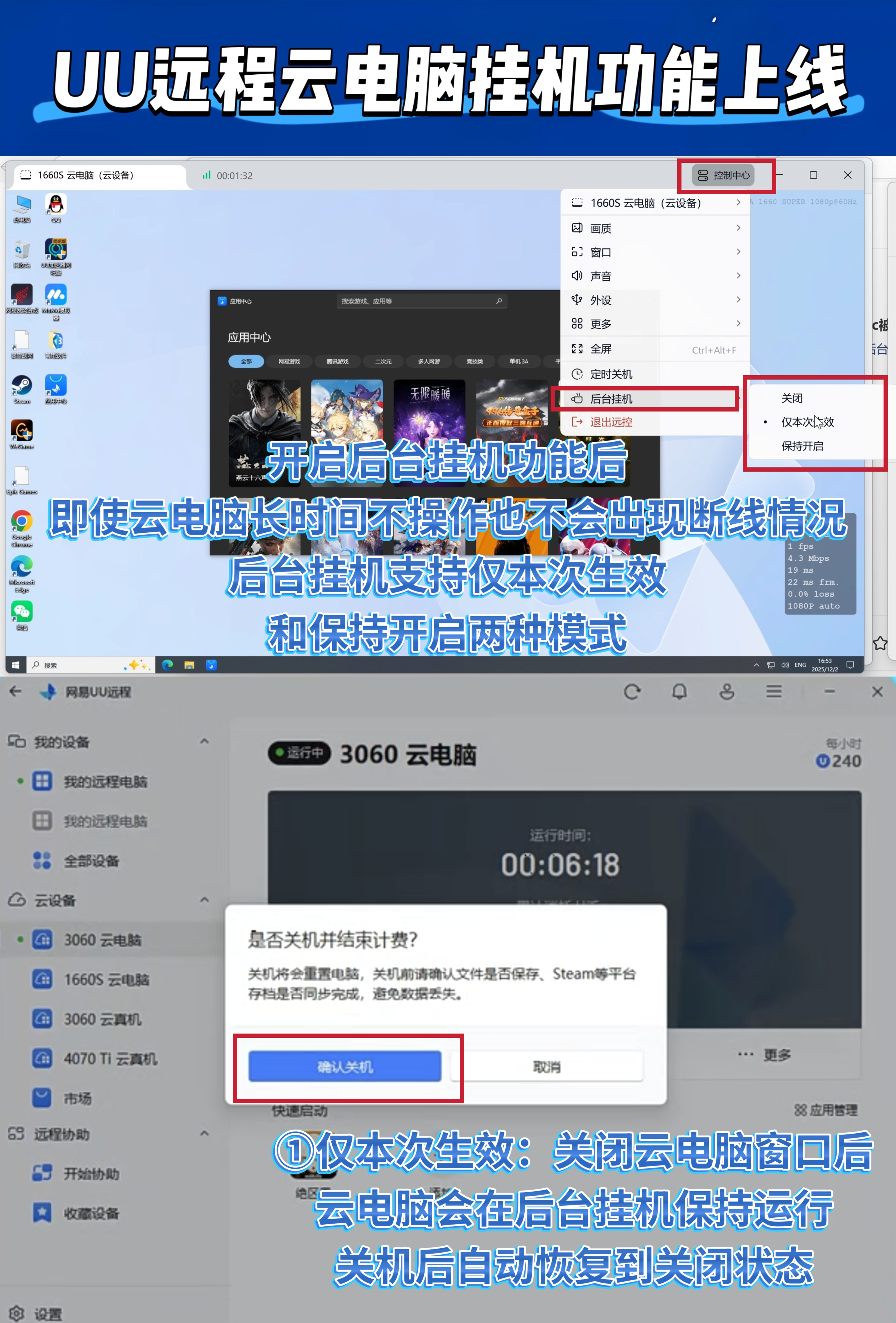 打工人摸鱼党狂喜!UU 远程云电脑新推出挂机+多开功能,还有定时关机功能上线!