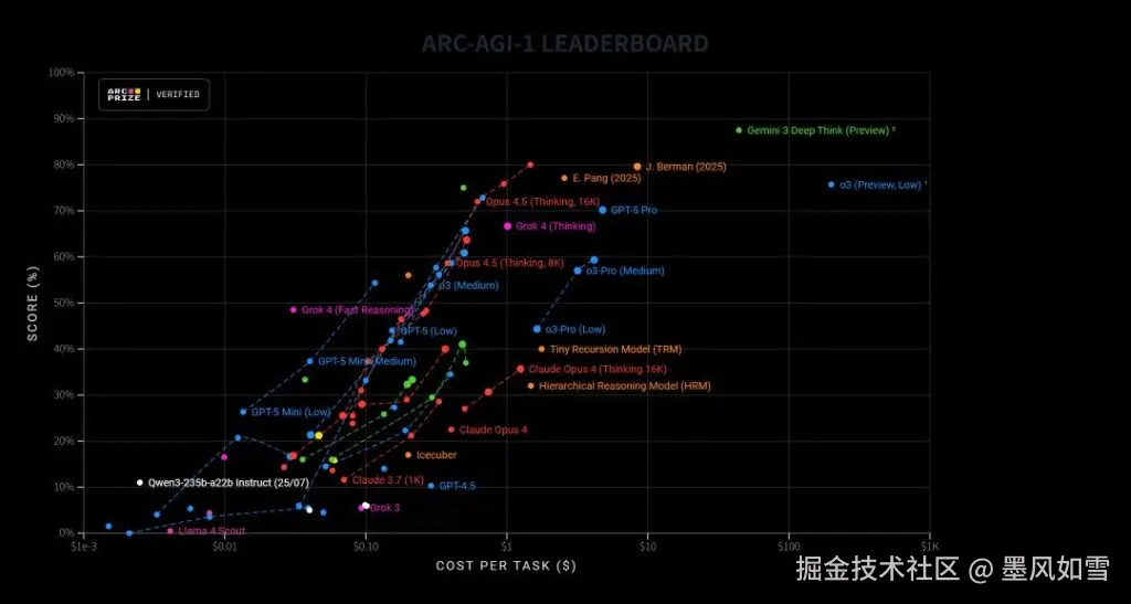 Deep Think就在做这件事。它不再依赖单一的线性预测,而是同时模拟多条推理路径,在内部进行自我辩驳、验证和筛选。这种"慢思考"(系统2思维),让它在处理那些需要极长逻辑链条的问题时,表现出了惊人的稳定性。