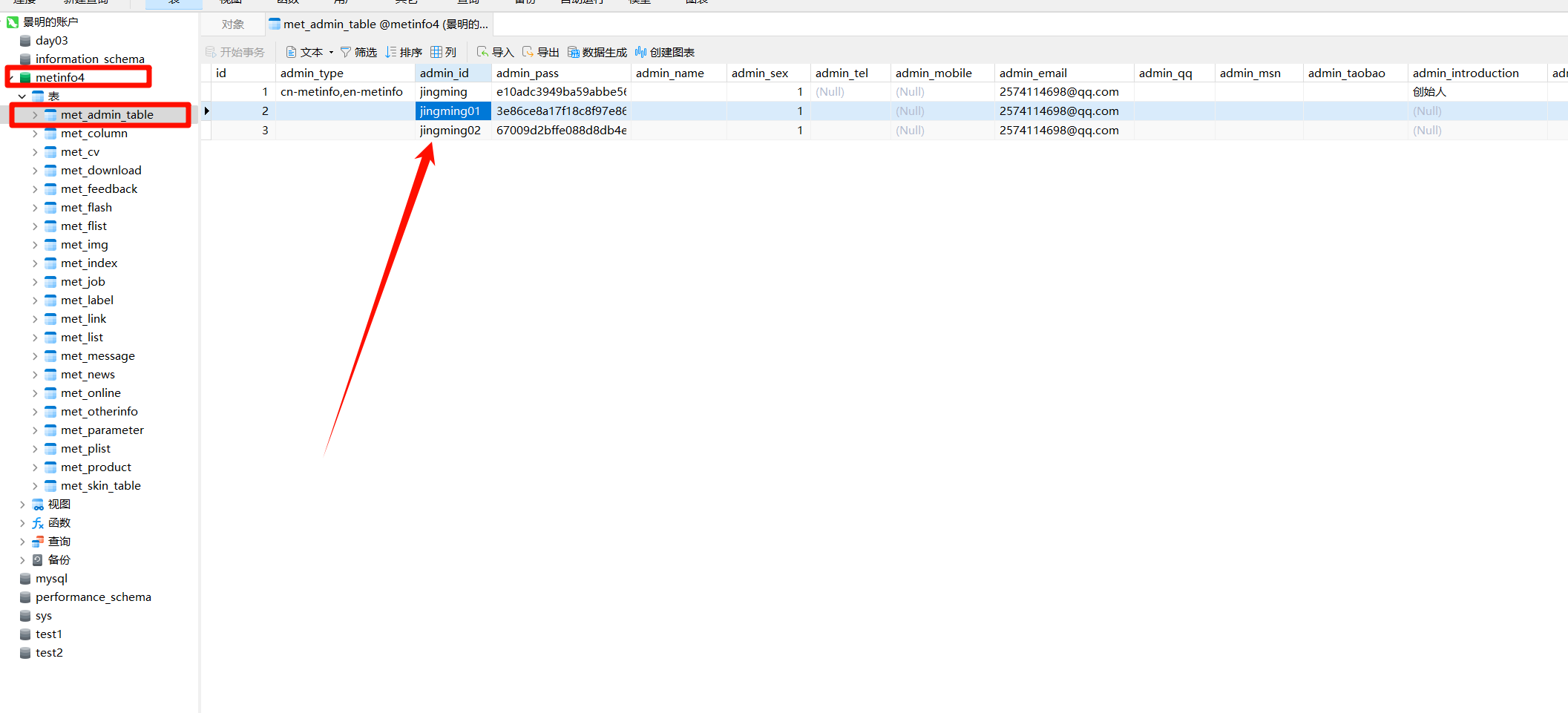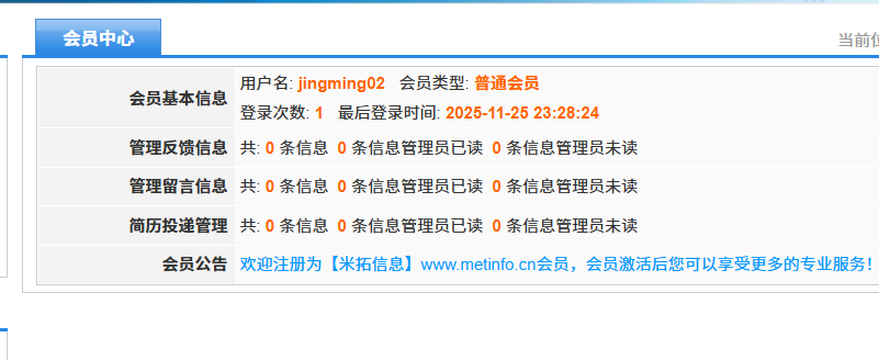 接着访问http://自己的ip地址/MetInfo4.0/member/有一个注册会员的功能,随便注册两个账号,接着即可在数据库里面看到注册的账号信息