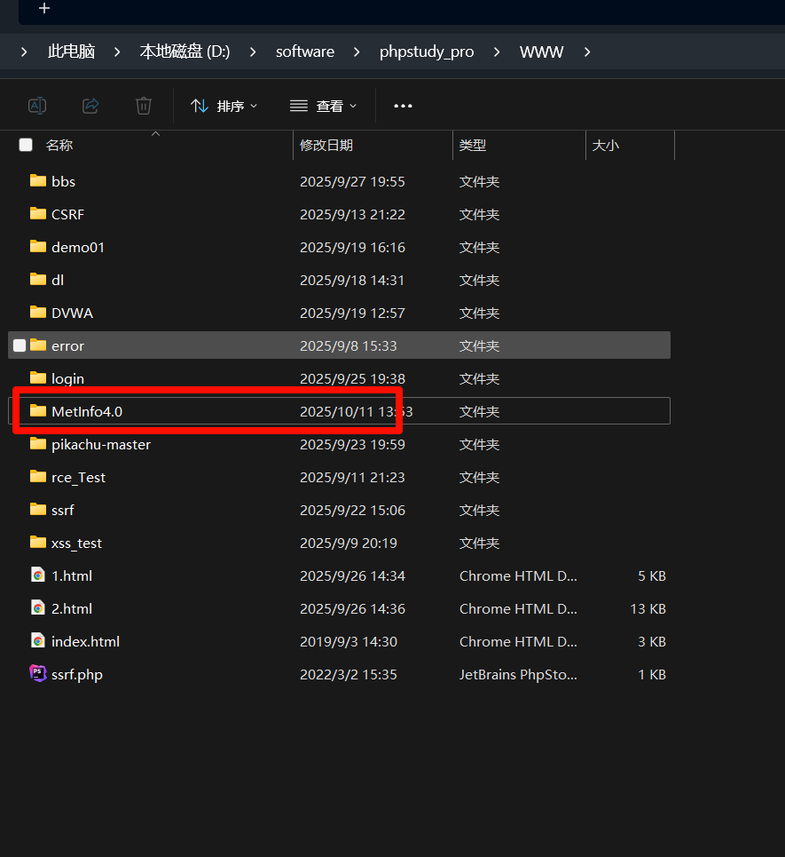 将MetInfo4.0解压到小皮根目录