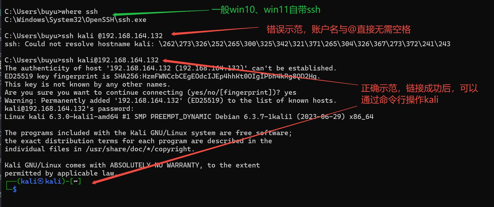 2、连接 Linux 服务器,链接语法: ssh 用户名@Linux的IP地址