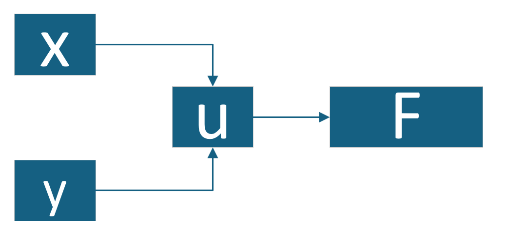 u(x,y)=x+y2F(u)=2u u(x,y) = x + y^2 \\ F(u) = 2u u(x,y)=x+y2F(u)=2u计算图 :