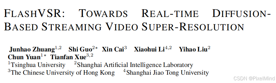 1\]. [论文地址](https://arxiv.org/pdf/2510.12747) \[2\]. [代码地址](https://github.com/OpenImagingLab/FlashVSR) *** ** * ** *** ## 专题介绍 现在是数字化时代,图像与视频早已成为信息传递的关键载体。超分辨率(super resolution,SR)技术能够突破数据源的信息瓶颈,挖掘并增强低分辨率图像与视频的潜能,重塑更高品质的视觉内容,是底层视觉的核心研究方向之一。并且SR技术已有几十年的发展历程,方案也从最早的邻域插值迭代至现今的深度学习SR,但无论是经典算法还是AI算法,都在视觉应用领域内发挥着重要作用。 本专题旨在跟进和解读超分辨率技术的发展趋势,为读者分享有价值的超分辨率方法,欢迎一起探讨交流。 **系列文章如下:** 【1】[SR+Codec Benchmark](https://blog.csdn.net/PixelMind/article/details/147879211?spm=1011.2415.3001.5331) 【2】[OSEDiff](https://blog.csdn.net/PixelMind/article/details/149294968?spm=1011.2415.3001.5331) 【3】[PiSA](https://blog.csdn.net/PixelMind/article/details/149549210?spm=1011.2415.3001.5331) 【4】[DLoRAL](https://blog.csdn.net/PixelMind/article/details/151801862?spm=1011.2415.3001.5331) 【5】[DOVE](https://blog.csdn.net/PixelMind/article/details/153042496?spm=1011.2415.3001.5331) 【6】[HYPIR](https://blog.csdn.net/PixelMind/article/details/154281249?spm=1011.2415.3001.5331) 【7】[SeedVR](https://blog.csdn.net/PixelMind/article/details/155004111?spm=1011.2415.3001.5331) ## 一、研究背景 当前基于扩散模型的VSR方法在效率、延迟和分辨率泛化方面表现不佳,难以满足实际部署需求。作者提出了实时视频超分的三个阻碍 1. 分块处理带来了延迟:块重叠区域引入了冗余计算 。 2. 密集的3D注意力:多数方案使用了全时空注意力,其在分辨率上具有平方级复杂度,对于长时间高分辨率的视频而言,成本显著提升。 3. 潜在的训练-测试的分辨率差距:多数attention-based的VSR方案在中等分辨率视频上训练,应用于更高分辨率,模型能力会降低。此差距源于训练和推理之间不匹配的位置编码范围。 因此,作者均提出了相应的改进措施,在效果和效率上都有突破,其核心创新点如下: * **创新1:三阶段蒸馏流水线 (Three-Stage Distillation Pipeline)** 设计了一个从"强教师"到"高效学生"的渐进式训练框架。首先用全注意力模型在高质量数据集上训练一个强大的教师模型;然后将其适配为因果稀疏注意力结构;最后通过分布匹配蒸馏将其压缩为一个单步模型。这种分阶段的方法解决了直接训练高效模型的困难,同时确保了最终模型的高质量和高效率。 * **创新2:局部性约束的稀疏注意力 (Locality-Constrained Sparse Attention)** 首次在扩散VSR中引入稀疏注意力机制。通过首先计算粗粒度的注意力图,然后仅在Top-k区域内进行全注意力计算,大幅降低了计算开销。更重要的是,它引入了空间局部窗口约束,强制训练和推理时的位置编码范围一致,从而**解决了高分辨率泛化问题**,这是以往方法未曾解决的关键痛点。 * **创新3:轻量级条件解码器 (Tiny Conditional Decoder)** VAE解码器是推理的主要瓶颈,为此设计了一个新的解码器。它不仅利用潜在特征,还将原始的低分辨率(LR)帧作为辅助输入,从而简化了重建过程,实现了约7倍的速度提升,同时质量损失极小。这种"条件"设计是其高效的关键。 * **其他亮点**: * **流式处理架构**:实现了真正的流式推断,仅需8帧的前瞻延迟,远低于传统分块处理方法的数十帧延迟。 * **新数据集VSR-120K**:构建了一个大规模、高质量的视频-图像联合数据集,为训练和评估提供了坚实基础。 * **并行训练**:由于模型在训练时仅依赖当前的LR帧和噪声,避免了序列依赖,支持高效的并行训练,大大提升了训练效率。  ## 二、方法细节 接下来详细介绍下FlashVSR的方法流程以及关键点。 ### 2.1 大规模数据集构建 (VSR-120K) 为了提升VSR数据集的数量和质量,作者构建了新数据集,从Videvo, Pexels, Pixabay等平台收集原始数据,包括600k个视频片段和220k张高分辨率图像。 * **筛选策略**: * **视觉质量**:使用LAION-Aesthetic预测器和MUSIQ对图像/视频片段进行打分,过滤低质量样本。 * **运动多样性**:使用RAFT算法计算光流,用光流场的L2范数来量化运动强度,过滤静态或运动不足的片段。 最终得到12万条高质量视频(平均每条\>350帧,分辨率大于1080p)和18万张高分辨率图像(大于1024x1024),支持联合训练。 ### 2.2 ⭐三阶段pipeline:一训二调三蒸馏  1️⃣ **阶段1:联合视频-图像超分训练 (Joint Video--Image SR Training)** 总体过程就是在预训练的视频扩散模型(Wan 2.1)基础上,使用VSR-120K数据集进行微调。将图像视为单帧视频,统一使用Full Attention。  需要注意的是: * 在联合训练时,模型可能会"混淆"不同数据源(比如把一张图片和一段视频的特征混在一起计算注意力)。解决方案是使用块对角线掩码,限制注意力在同一个片段内,强制模型的注意力只在同一个"片段"(segment)内进行。 α i j = exp ( q i k j ⊤ d ) 1 \[ seg ( i ) = seg ( j ) \] ∑ l exp ( q i k l ⊤ d ) 1 \[ seg ( i ) = seg ( l ) \] \\alpha_{ij} = \\frac{\\exp\\left(\\frac{q_i k_j\^\\top}{\\sqrt{d}}\\right) \\mathbf{1}\[\\text{seg}(i) = \\text{seg}(j)\]}{\\sum_l \\exp\\left(\\frac{q_i k_l\^\\top}{\\sqrt{d}}\\right) \\mathbf{1}\[\\text{seg}(i) = \\text{seg}(l)\]} αij=∑lexp(d qikl⊤)1\[seg(i)=seg(l)\]exp(d qikj⊤)1\[seg(i)=seg(j)