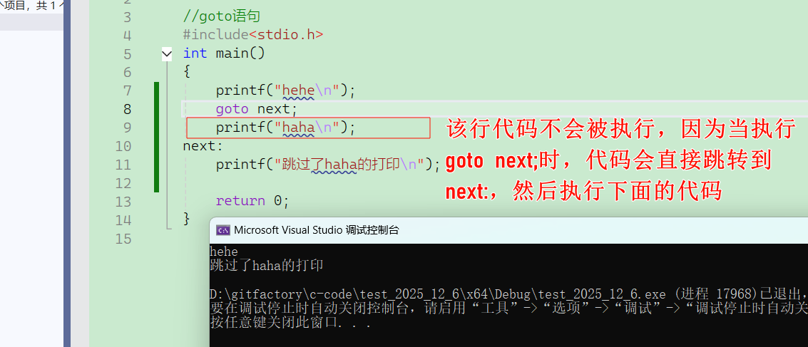 但是goto语句也不是一无是处,比如:在多层循环的代码中,如果想快速跳出循环,那么此时使用goto语句就非常方便。