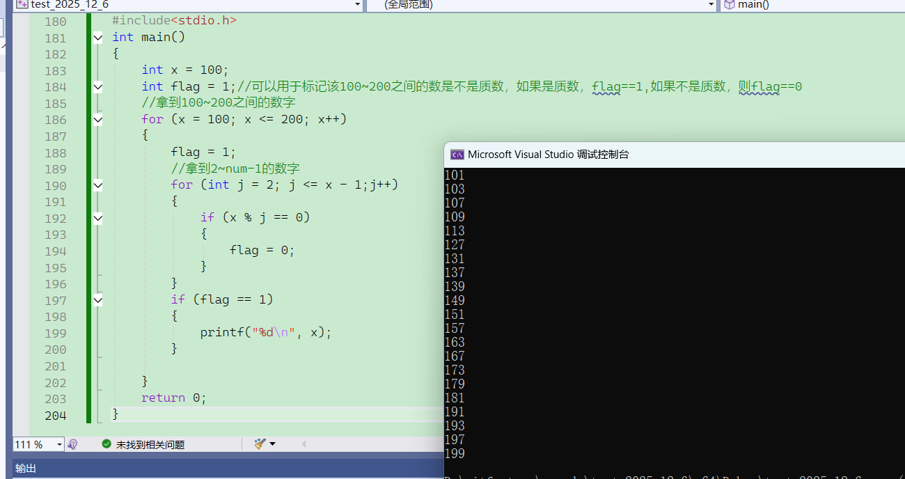 练习:找出100~200之间的素数,如果是素数,直接打印在屏幕上(素数即质数,只能被1和本身整数的数字)