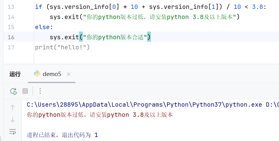 sys.exit("你的python版本过低,请安装python 3.8及以上版本")