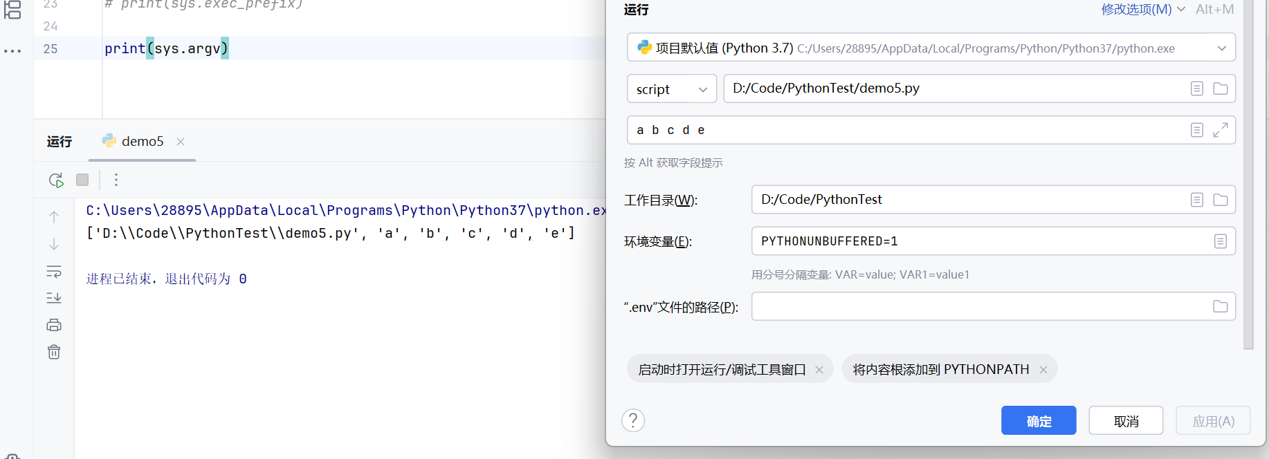 - argv() 函数可用于获取用户命令行输入的参数并以列表的形式返回,列表的索引号0时返回的是当前文件所在的目录地址