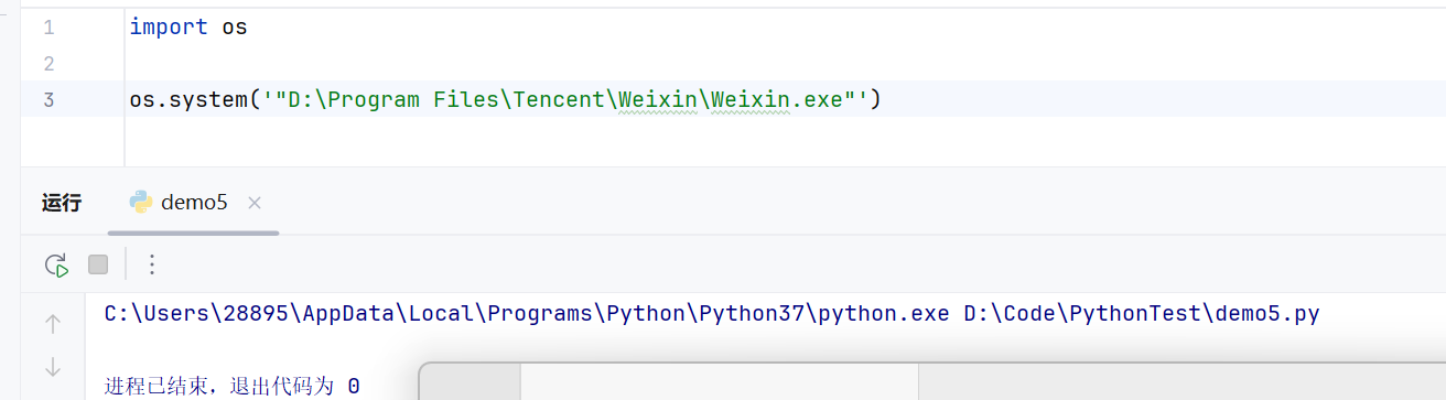 os.system('"D:\Program Files\Tencent\Weixin\Weixin.exe"')