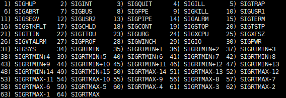 首先,要把信号和信号量分别开,信号是用来通知进程发生了一些事件,而信号量是用来解决同步与互斥问题的。可以通过kill -l查询信号和对应的编号: