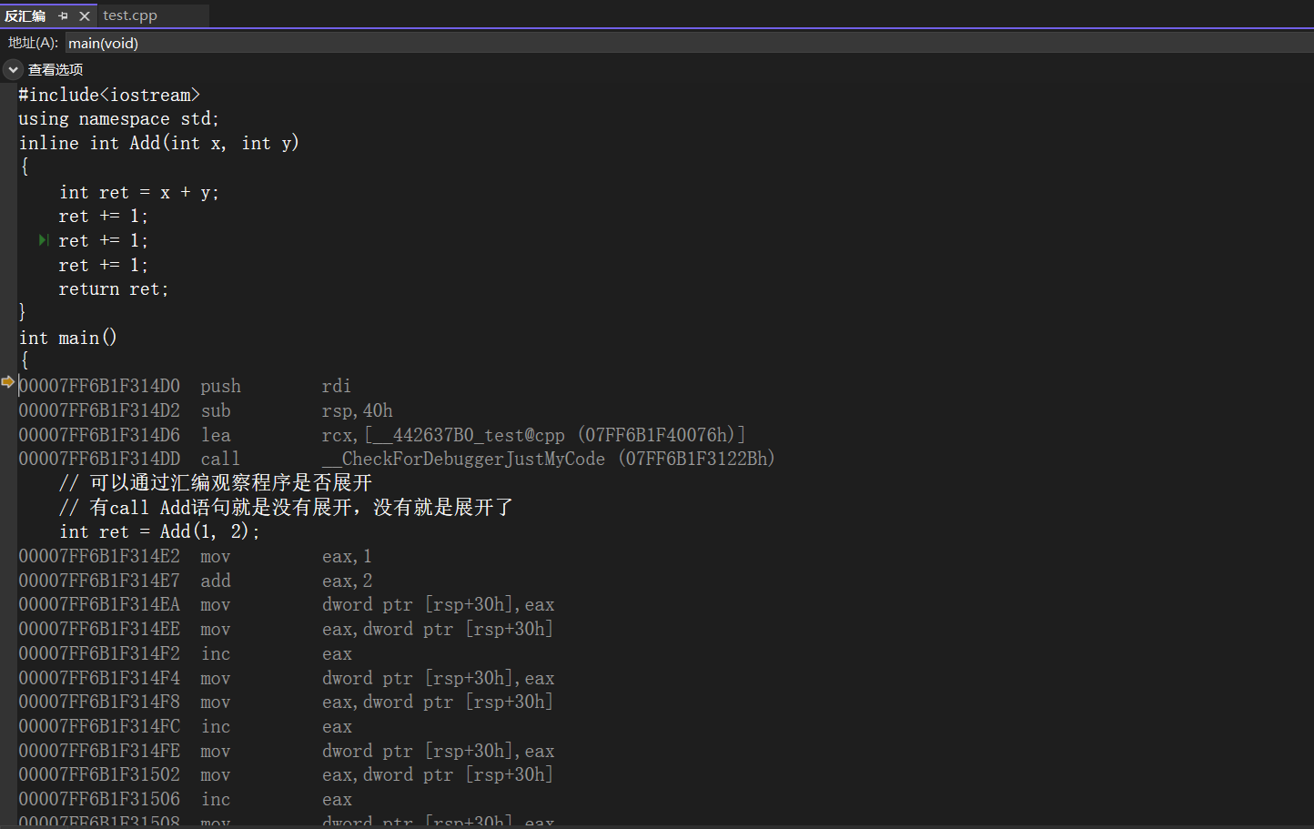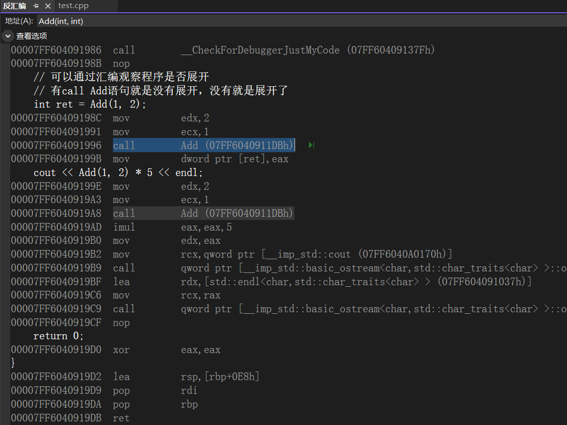 // 有call Add语句就是没有展开,没有就是展开了
