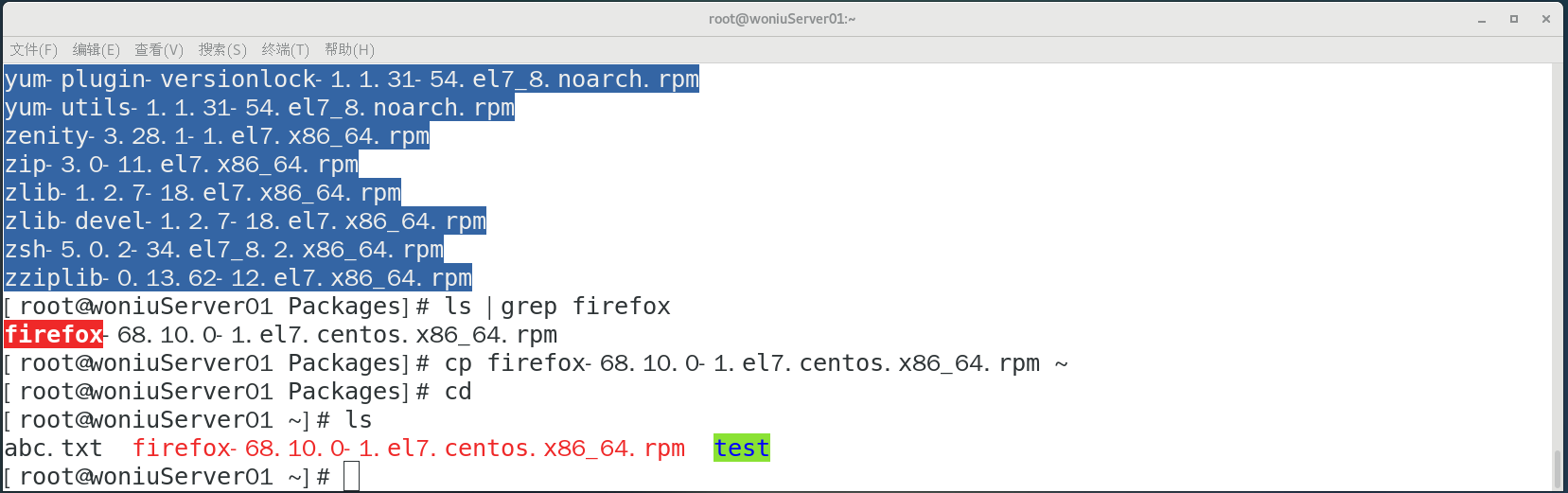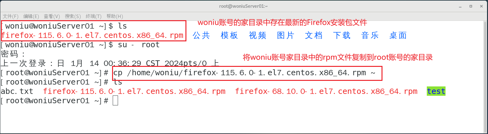 需求:切换到root账号,将firefox的rpm文件复制到root账号的家目录