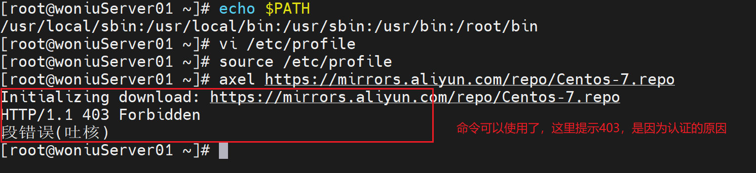 vi /etc/profile # 将axel的永久添加到环境变量中