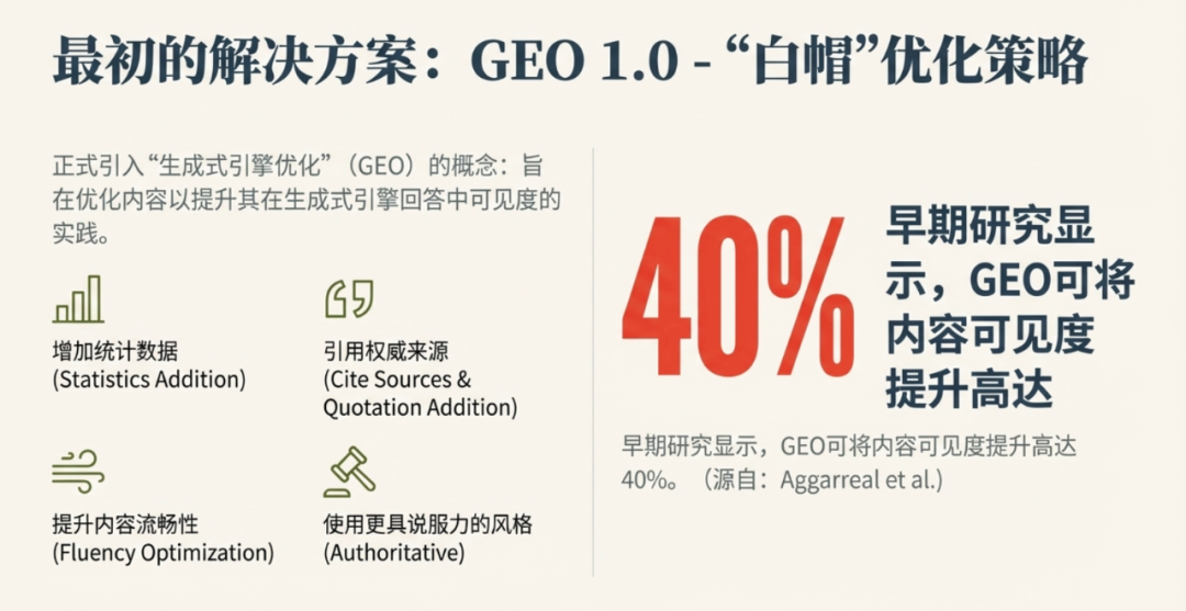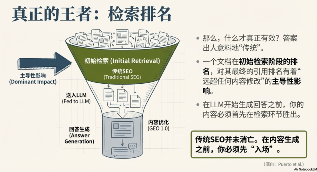 - 文档在 LLM 上下文窗口中的初始排名 (这是传统 SEO 的目标)对 LLM 引用排名的影响远大于任何 GEO 方法