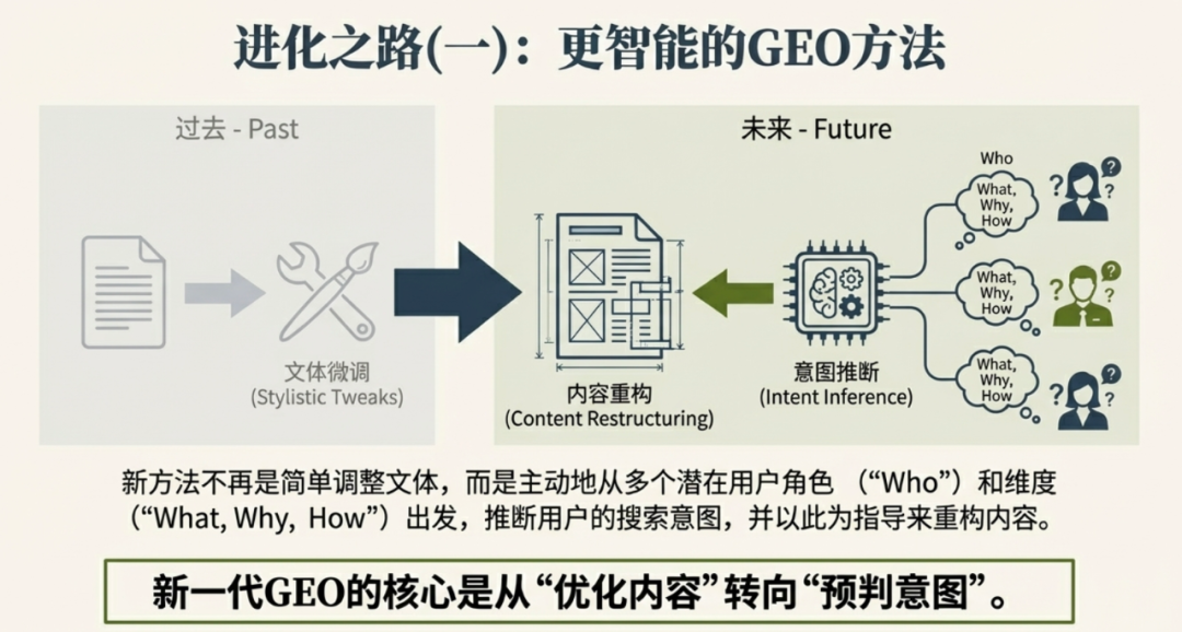论文里提到"通过建模用户潜在搜索意图来指导内容优化", 和我们最近的一项实验很相似,通过抽象概括原理模拟预演。