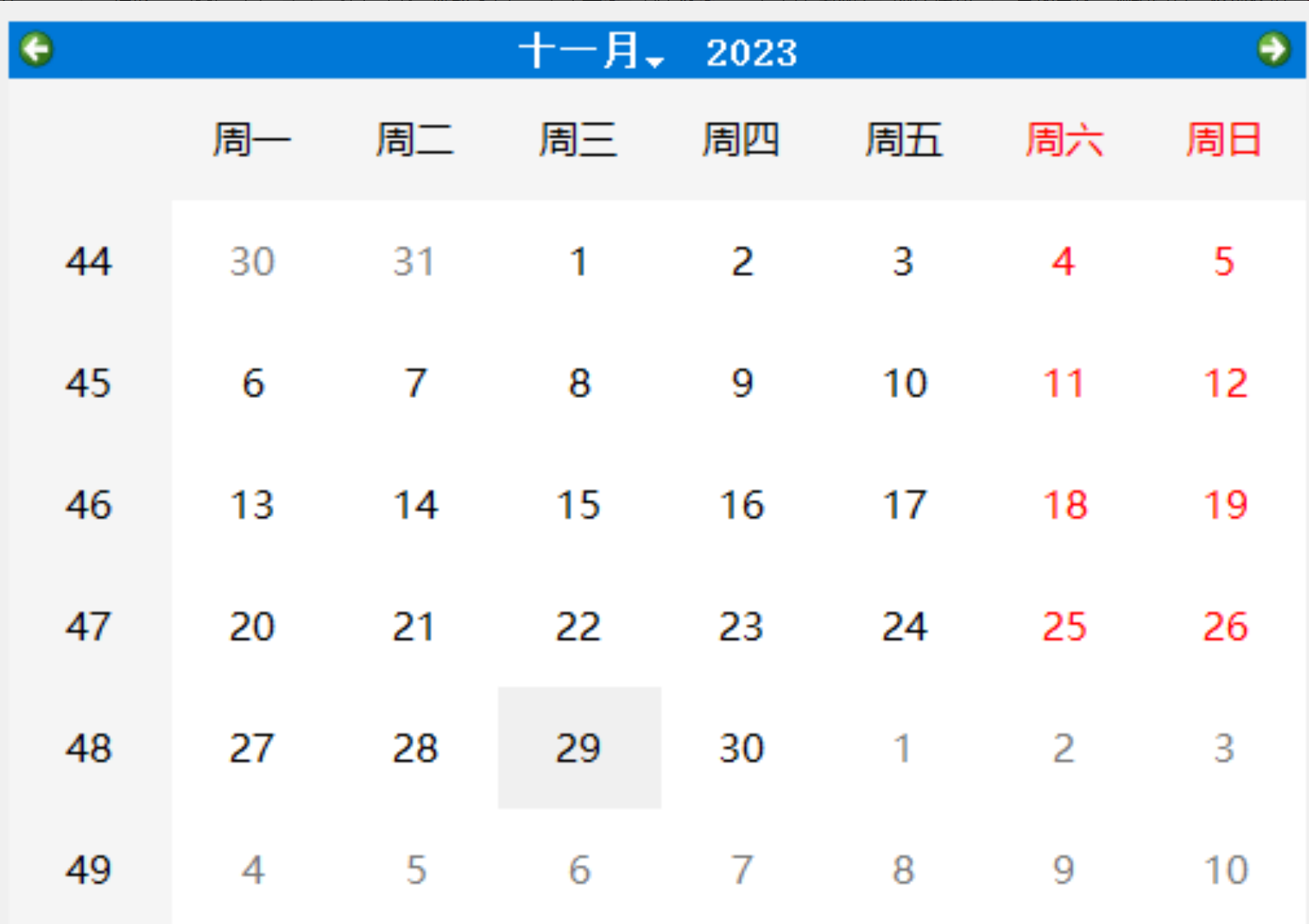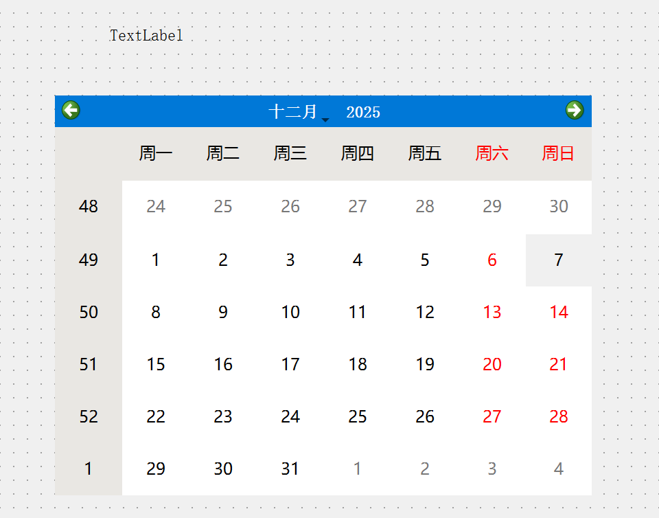 | verticalHeaderFormat | 日历第⼀列显示的内容格式 |