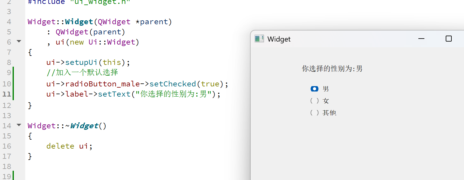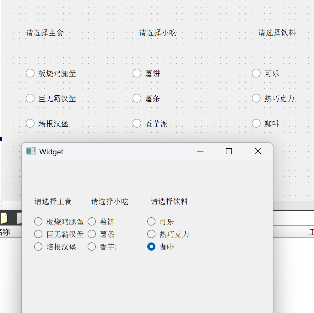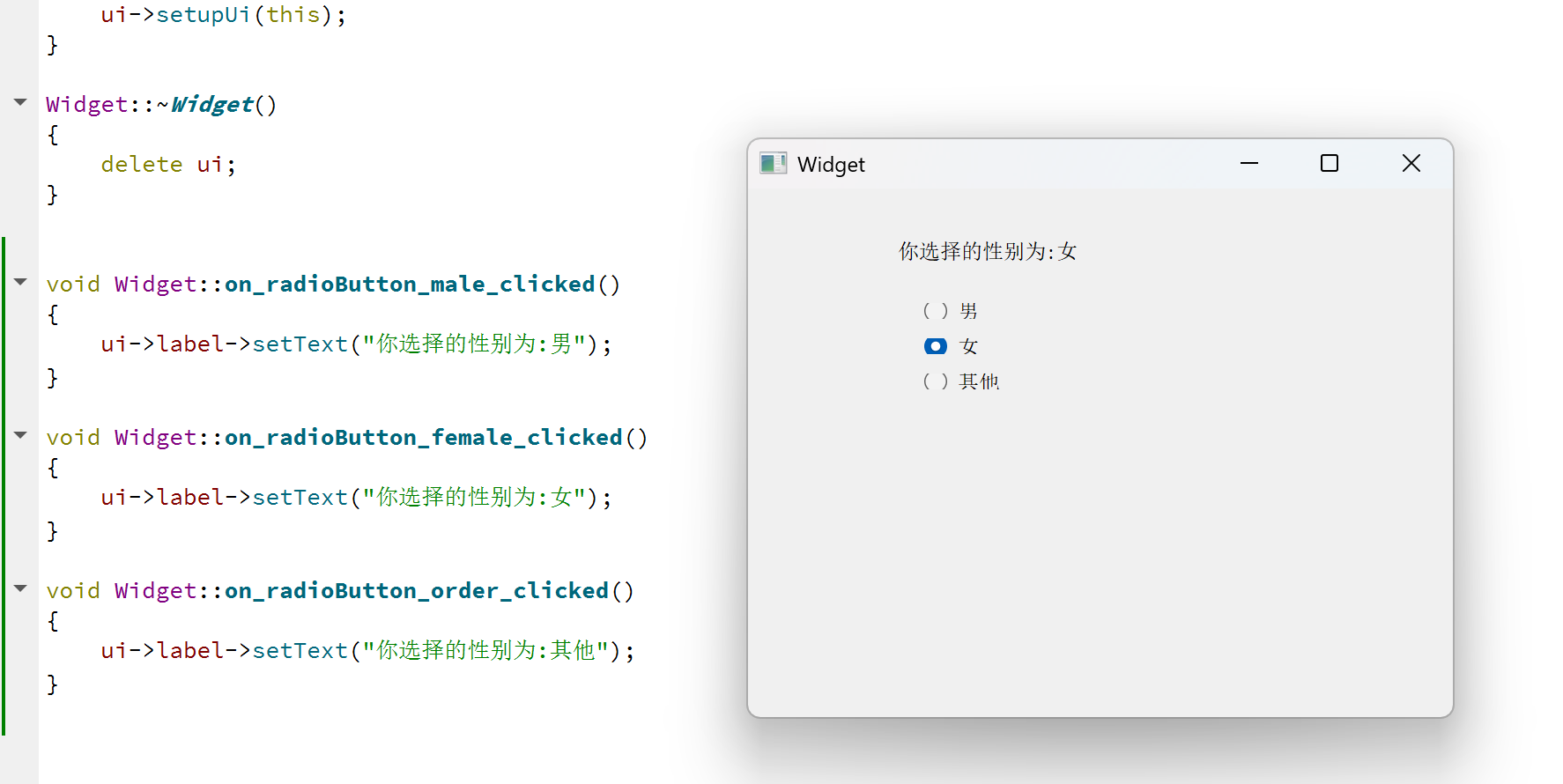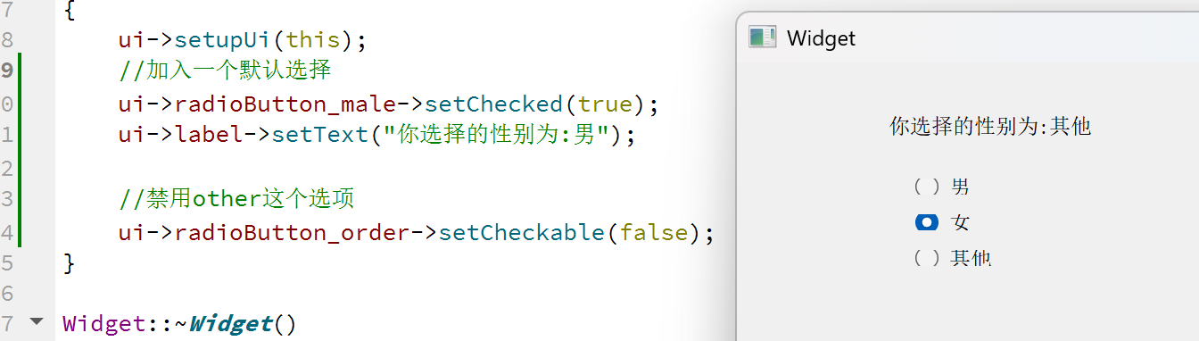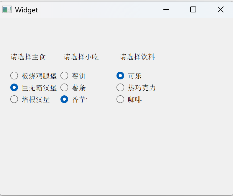 QRadioButton 是单选按钮,可以让我们在多个选项中选择⼀个