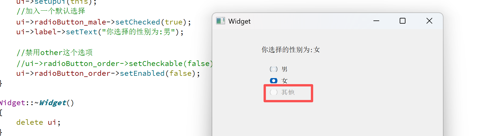 同样的我们也可以禁用按钮,举个例子我们将"其他"这个选项禁用