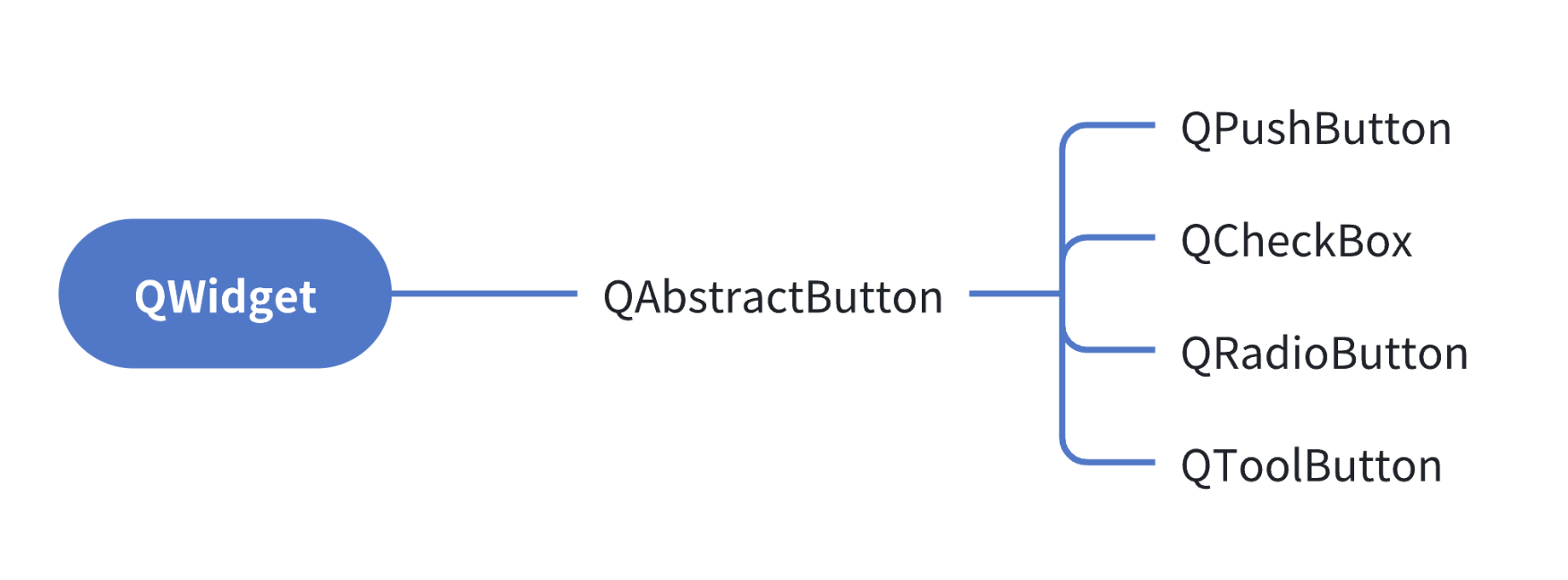 QPushButton 继承自 QAbstractButton 类,后者是一个抽象类,作为所有按钮控件的基类。