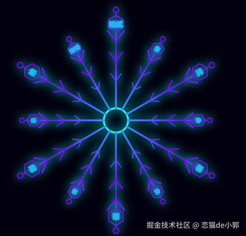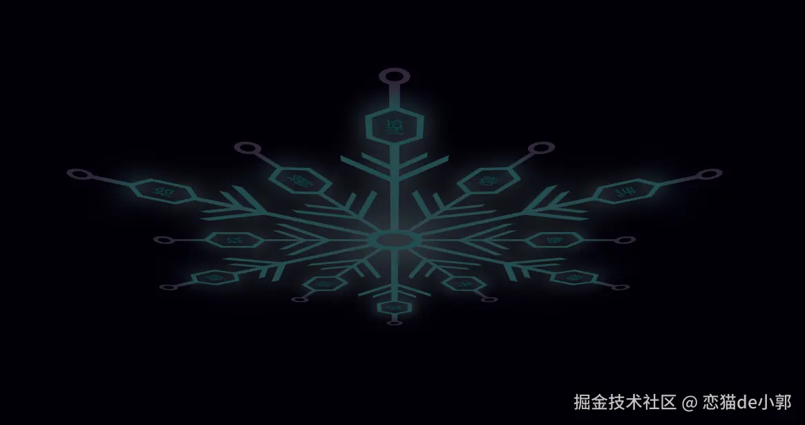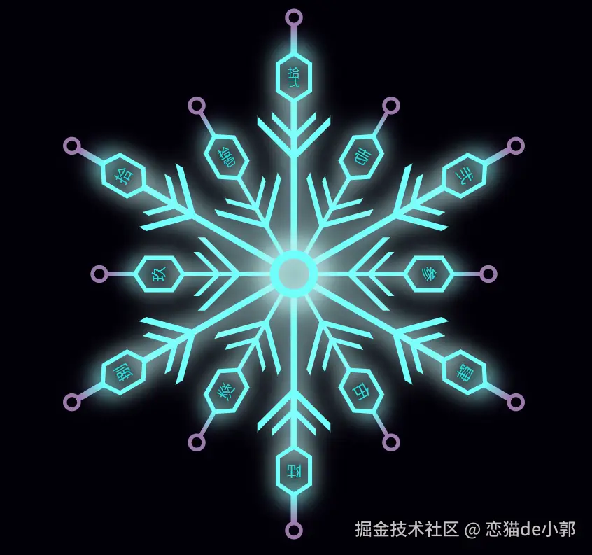 循环 12 次绘制雪花瓣,代码通过 i % 2 == 0 判断当前是长轴 还是短轴,从而实现错落有致的视觉效果(类似于雪花结构)