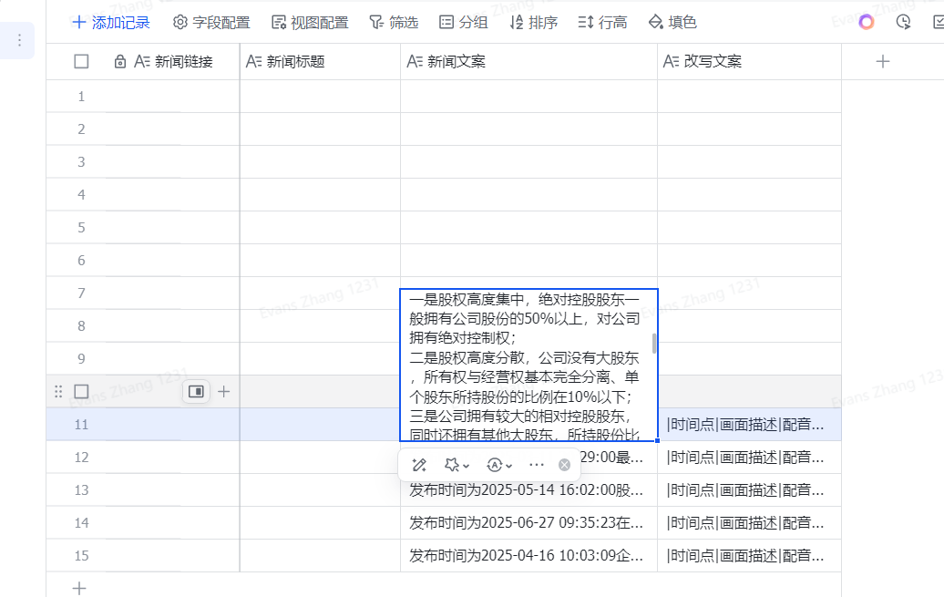 将改写后的内容以视频文案的形式进行输出,对接飞书多维表,从而输出到多维表中