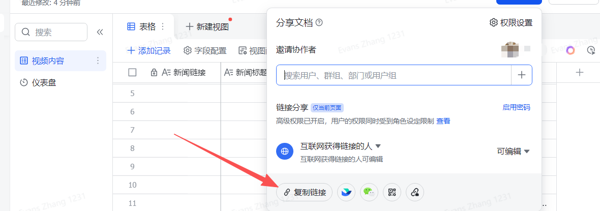 上一步得到的结果,比如视频文案,标题,内容,接下来需要将其存储到飞书多维表中以供后续使用