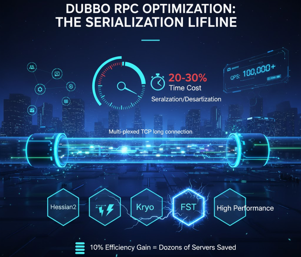 本文将为你深入解析Dubbo序列化性能优化的完整方案:从主流协议选型对比,到高性能Kryo/FST的实战配置,再到针对大数据和特定结构的专项优化,最后提供平滑升级的策略。助你全面压榨序列化性能,打造高效的微服务通信体系。、