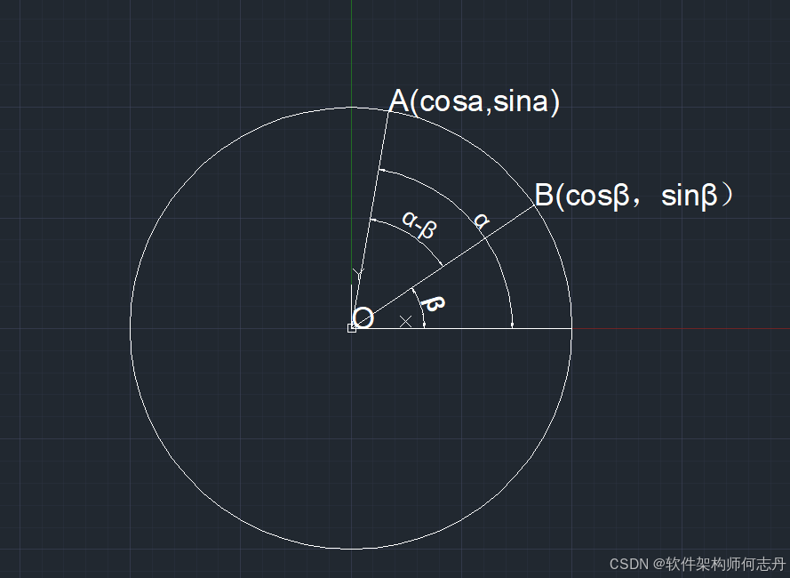 联立两式得 cos ( α − β ) = c o s α cos β + sin α sin β \cos(\alpha-\beta)=cos\alpha\cos\beta+\sin\alpha\sin\beta cos(α−β)=cosαcosβ+sinαsinβ 余弦差公式